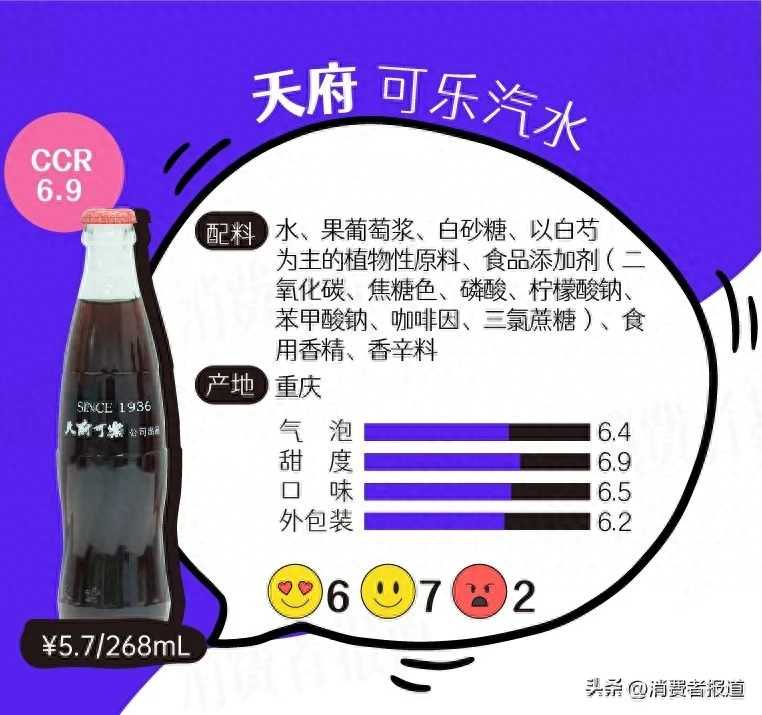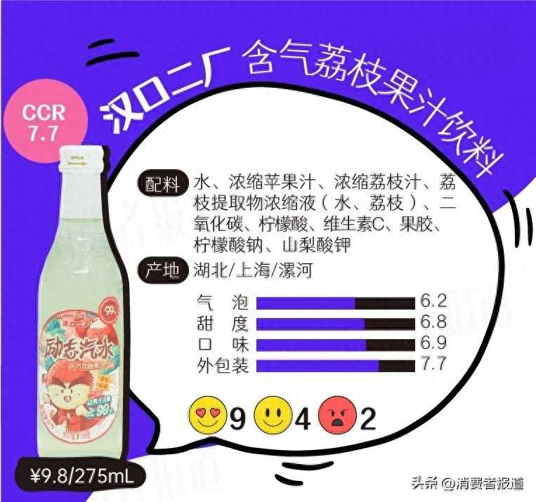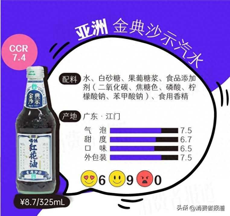 小8:气泡充足,有汽水该有的刺激感,但太甜了,也只有甜味,所以喝起来像“糖水+汽”。