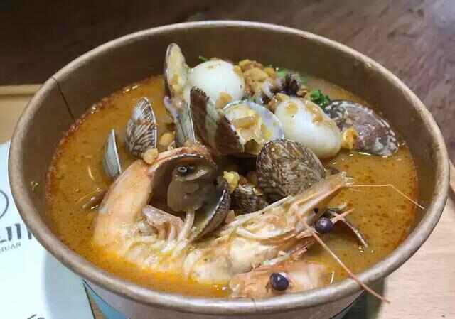 厦门人吃沙茶面的习惯是从小养成的,早餐、中餐、下午茶、晚餐、夜宵、通通可以用一碗浓香热腾的沙茶面来满足。沙茶其实不是一种茶,它的真实名字叫“沙嗲”,闽南话“嗲”的发音与“茶”相同,所以兜兜转转“沙嗲”成了“沙茶”。沙茶面的做法很简单,一碗碱水油面烫熟,加入瘦肉、大肠、鱿鱼、猪肝、米血、卤豆腐、鸭血等辅料,最后淋上一直在大锅里滚开的浓郁沙茶汤,成就了一碗香气扑鼻的沙茶面。