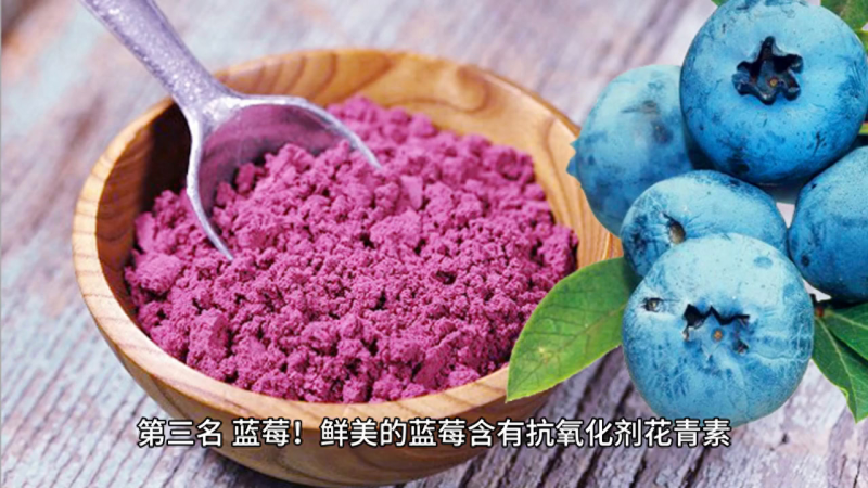 ·第三名是蓝莓,鲜美的蓝莓含有抗氧化剂花青素,它让蓝莓成为许多水果中独特的存在。