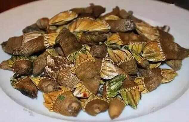 龟足也叫观音掌、佛手贝,在厦门它被当作是一种无比珍贵的稀有食材,价格更是卖到上百元一斤,他们吃的都是龟足的柄部,把最外边的硬皮剥掉,就吃里边的白肉,可以爆炒也可以白灼,有种蟹肉的口感,咬着就像是嗑瓜子,肉质很紧实。
