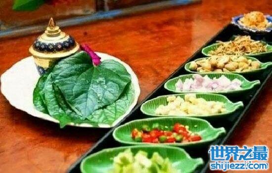 密延堪乍一听好像与美食没有任何关系,小编一开始听的时候也是一头雾水,但是最后品尝到这道美食真有点相见恨晚的感觉呢,它是一种街边小吃和聚餐零食,酸甜辣咸,每一口食物中,各种味道都在冲击着你的味蕾。在菜叶上堆上一些细碎的姜丝、椰子肉、花生、等配料,再均匀地撒上一种香甜辛辣的酱汁。咬一口真的是酸酸甜甜我的爱!