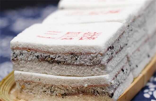 三层糕主要是用糯米粉,青梅,葡萄干,青红丝制作而成,蒸熟以后晾凉了吃味道有淡淡的米香味儿,甜而不腻是福建南平地区特有的美食。