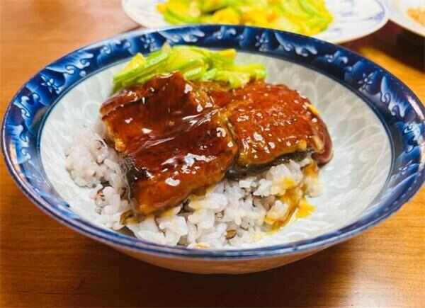 鳗鱼饭有点类似中国的盖浇饭,是把米饭蒸熟之后把烧好的鳗鱼裹上酸甜的酱汁一起配在米饭上面,是日本非常流行的传统美食。