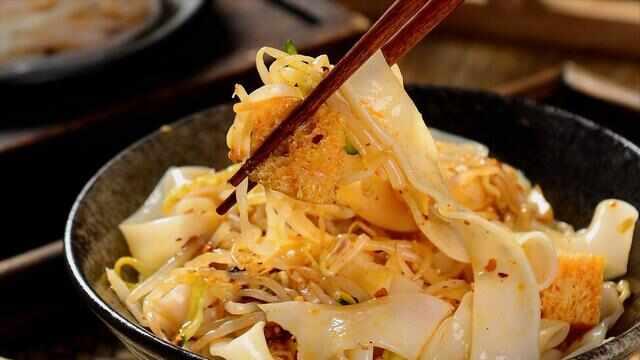 岐山擀面皮是陕西宝鸡的特色小吃,也是当地人最爱的美食之一。这道菜以面粉为主料,经过揉捏、擀制和蒸煮等多道工序而成。岐山擀面皮的特点是薄如纸片,口感筋道,配以豆芽、黄瓜和各种调料食用,味道鲜美。