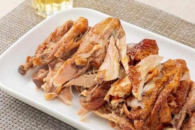 德州扒鸡是由真空包装的,这种包装方式更是保存了它原来的美味。鸡皮入口即化,鸡肉更是非常入味,鸡胸肉也不柴,鸡骨头都是酥的,是一道老人孩子都爱吃的菜品。在餐桌上摆放时,可以在盘中铺垫一层生菜叶这样既美观又有食欲!
