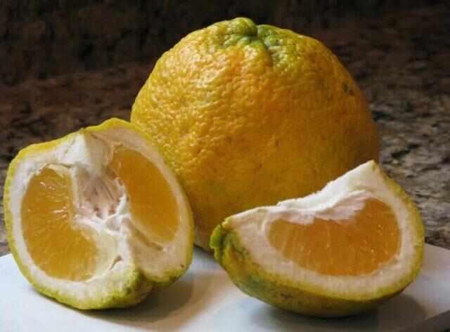 丑橘看起来也很丑,它看起来有点像腐烂的橘子,但是不要光看外表,这种水果很好吃。这种水果生长在牙买加,它是橘子、葡萄柚和橘子的杂交品种。