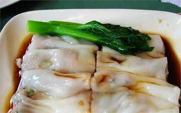 肠粉其实和肠子一点关系都没有,它就是米浆刷在做肠粉的托盘上,加入肉馅或鸡蛋、生菜、葱花等配菜,放入蒸汽抽屉内蒸熟,卷好,顺滑爽口,还带着米粉的清香。肠粉很多区别都是在于配菜上,而它的原材料依旧是米浆。