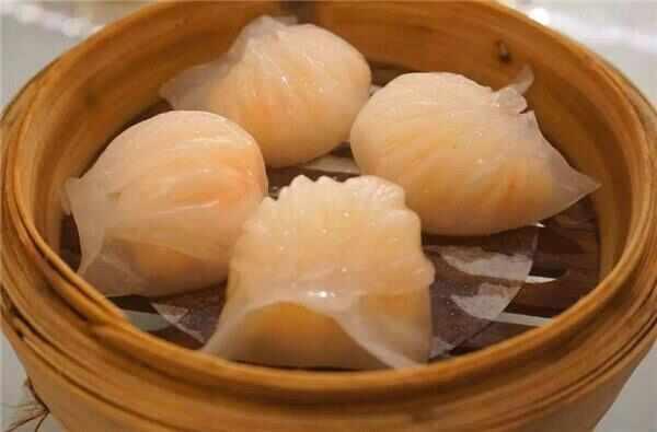 虾饺也是一道特色早茶美食,虾饺跟我们常吃的水饺和馄饨都不同,不仅形状不同,外皮不同,口感和口味也不同。虾饺的形状是半圆的,总共有十二褶,馅料有一只整虾,有肉和笋,有的还会有香菇,吃起来虾味四溢,口感爽滑。水饺皮是用面粉制作的,而虾饺将面粉改为澄粉,制作出来的虾饺皮有弹性,有韧度,颜色透明,又好看又好吃。