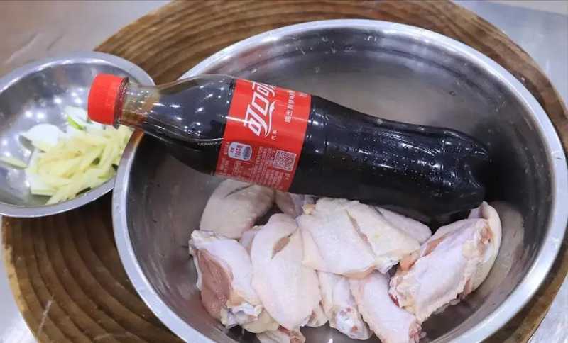 准备一盘鸡翅中,放入清水中洗干净,在两面划上刀口,方便腌制入味。切点葱粒、姜片备用。再准备一瓶可乐。