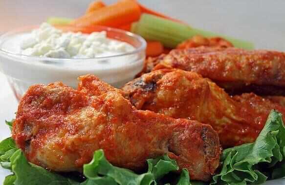 布法罗的辣鸡翅主要是首先将鸡翅放到热油中炸至焦脆,然后将其放在有青菜的盘子里,所以在口感上不会显得特别的油腻,有非常的爽脆可口。