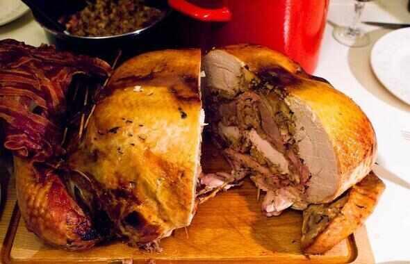 Turducken绝对是属于能颠覆人们想象的一种,它简单的来说就将火鸡塞到鸭子的肚子,至于其它的配料那就是能自由发挥的了,经过油炸后,在口感上会是十分的酥脆。