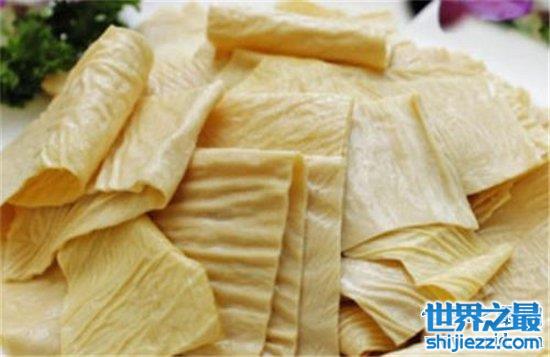 我们生活中的豆类本身就含有超级丰富的蛋白质,就比如这一个豆皮,不仅营养丰富而且味道特别的美味,深受人们的喜爱,豆皮是豆腐煮沸腾之后上面形成的一种膜,晒干后形成的,很劲道,而且蛋白质含量很高,价格也很便宜,受到了很多人的喜爱。