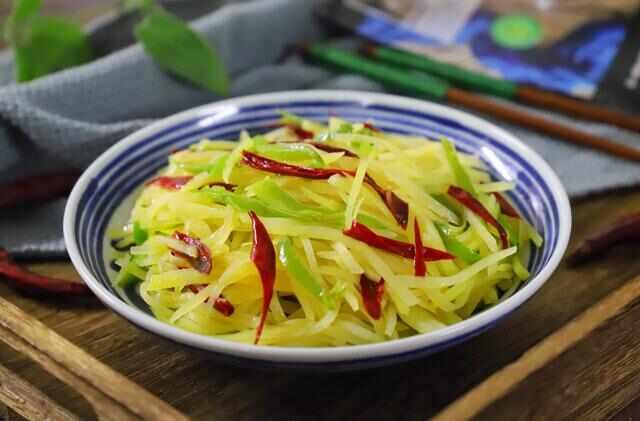 这道菜色泽诱人,独具开胃魅力。将细丝土豆经过开水焯水煮熟后,捞出并沥干水分。取一锅加入少许油,放入泡红椒、蒜末、姜末,迅速爆炒出香味,再加入醋、盐、糖等调料。最后,将煮熟的土豆丝倒入锅中,快速翻炒均匀。这道菜的口感酸辣可口,带着独特的酸爽感,令人胃口大开。每一口都能感受到细腻的土豆丝和香辣的调味,让人回味无穷,尽显开胃美味。