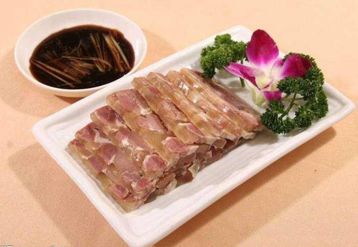 镇江水晶肴肉是江苏镇江的传统名菜,以猪蹄膀为主要原料,经过腌制后用特制的调料烹制而成。成品色泽红亮、口感鲜美、肉质酥烂,是一道色香味俱佳的美食。