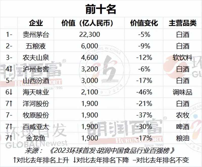 胡润中国食品行业前十席位,白酒企业占据半壁江山!