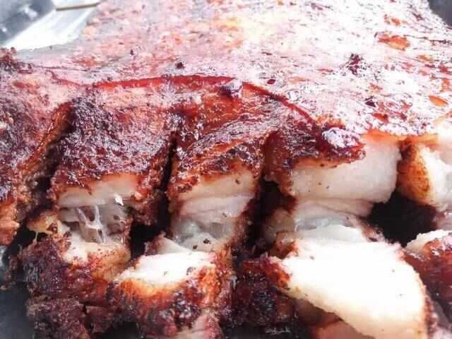 黄家烤肉系济南名吃。其起源于明末清初,距今已有300年历史。制作时以整猪烤制,以皮黄、酥脆爽口、肥而不腻、久放长存而闻名。传说早在元朝,章丘市黄家湾有一个姓黄的人在朝中做武官,因打了败仗被贬回原籍。其随从中有一蒙古人经常点燃树枝烤羊肉吃,鲜美的味道吸引了很多人。黄家因此受到启发,也经常烤肉吃,不过,因为此地世代养猪,主要是烤猪肉吃,而且是将猪肉割成块烤。到明朝末年,终于发展到用特制的炉子烤整猪和以烤肉谋生。因此,自明朝迄今,黄家烤肉已有300多年历史了。
