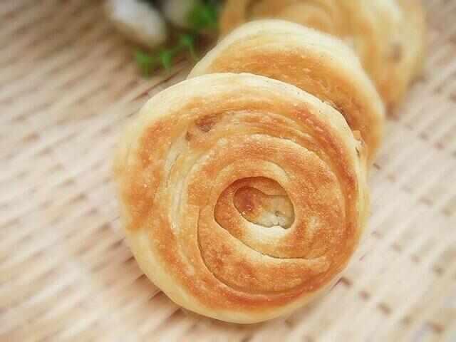 油旋,又叫“油旋回”,是山东济南特色传统名吃,外皮酥脆,内瓤柔嫩,葱香透鼻,因其形似螺旋,表面油润呈金黄色,故名油旋。济南人吃油旋多是趁热吃,再配一碗鸡丝馄饨,可谓物美价廉,妙不可言。油旋有圆形和椭圆形两种。更有精细者,在油旋成熟后捅一空洞,磕入一个鸡蛋,再入炉烘烤一会,鸡蛋与油旋成为一体,食之更美。