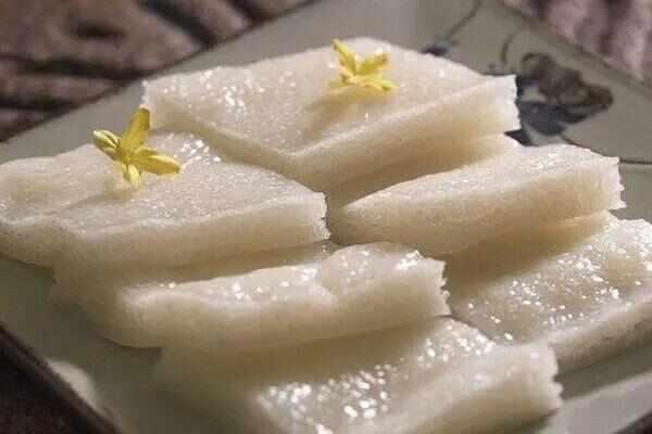 佛山九层糕是一种广泛流行在广东省佛山、南海一带的地方特色甜米糕小吃,做工讲究。当地民间喜庆节日,尤其春节,家家必做九层糕,用白米浸透,用石磨磨成水粉,搅拌成浆,加入糖水,用铜盘放一层薄水粉,加热蒸熟,然后逐层加粉至九层。