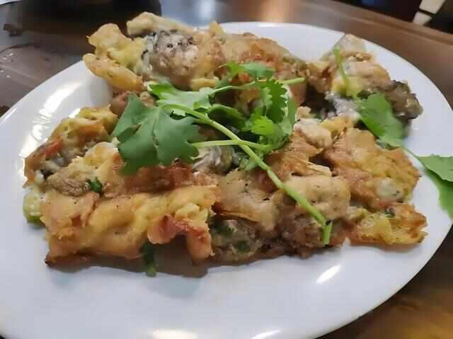 蚝烙是广东省潮汕地区的一道特色小吃(潮汕话为o lua),该菜品在台湾地区称为蚵仔煎,外地人来潮汕总要品尝这一美食。在潮汕城市乡村小市集,常有这种小店或摆摊小贩。这种蚝烙,是用地瓜粉溶于水,拌葱珠,在一个平底的铁锅上煎,加上海蛎,再下蛋花,取起蘸鱼露吃。