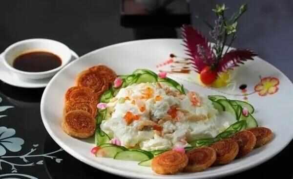 野鸡卷拼炒牛奶是顺德菜中备受赞誉的一道名菜,具有选料严格、刀工细腻、加工讲究、调味和谐、火候精到的特点。它在1988年的顺德美食大赛上被评为十大金牌名菜之一。野鸡卷拼炒牛奶的主要食材是用陈年绍酒腌制的冰肉和火腿肉。制作过程中,将火腿肉包裹在冰肉中,切成棋子状后油炸至金黄酥脆,肉味鲜明。