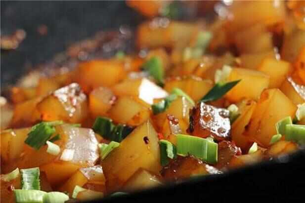 炒凉粉是开封人喜食的一种风味小吃,开封不少地方都设有出售点。其制法是:把粉芡配水打成稀糊,入沸水成熟糊晾凉,即为凉粉。炒凉粉就是以凉粉为主料,加入少量的油,把凉粉放入平底锅内,然后佐以豆酱、葱、姜,用锅盖盖住闷少许。炒好的凉粉热香鲜嫩,焦而不糊。