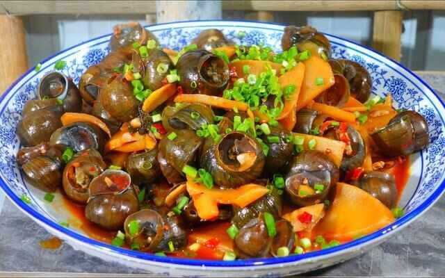 酸笋炒田螺是广西贵港地区的一道特色菜。它的主要食材是田螺,经过清洗和处理后炒制。烹饪时,将田螺与酸笋等配料一同炒熟,加入特制的调味料,使其味道独特。酸笋炒田螺以其酸辣可口的味道而闻名。田螺炒制后口感鲜美,肉质肥嫩,吃起来味道鲜美爽口。贵港的炒田螺与其他地方有所不同,经过辣炒后,配上特制的酸笋,味道酸辣开胃,独具风味。此外,贵港还有以田螺为食材的其他特色菜品,如田螺汤,汤汁鲜美清爽。