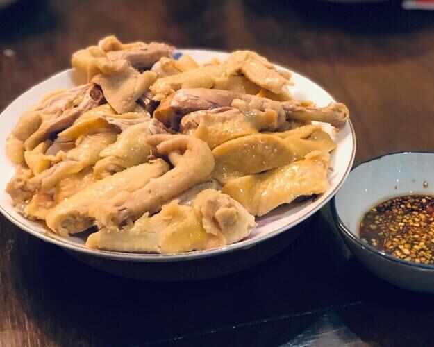 白切三黄鸡广西平南县的著名传统美食,三黄鸡品质一流,一般是白切,做出来的美味鲜美软滑、幼嫩甘香,受到了大家的喜爱。白切三黄鸡的制作工序也是很讲究的,选用约1.25千克左右的平南三黄项鸡,宰杀后去掉内脏,生盐腌制,将鸡放入水中煮三分钟,将煮鸡的开水倒入盆种盖好,约20分钟即熟。