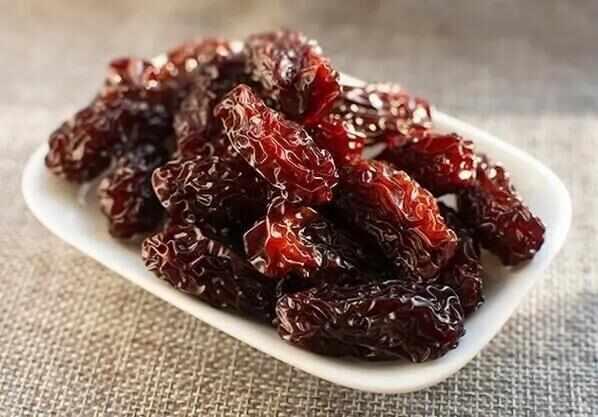 西山焦枣,安徽省池州市特产,中国国家地理标志产品。西山焦枣采用传统的制作工艺,先蒸后烘,反复多次,有利于维生素的保存。色如紫金,形如玛瑙,柔软鲜嫩,甘甜溢香,可谓色、形、质、味样样俱全,营养价值高于金丝琥珀枣和蜜枣。