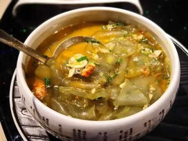 蟹黄粉皮,爽滑鲜香,老少皆宜。最地道的蟹黄粉皮,要精选泰州特有的绿豆鲜粉皮为食材,这种粉皮用独特工艺精制而成,韧性十足,不易黏糊,口感肥厚又滑爽。制作完成的蟹黄粉皮,不仅口感爽口,蟹味扑鼻,而且颜色黄白相应,看着就十分诱人。尝一口,简直要鲜美了一整个秋季。