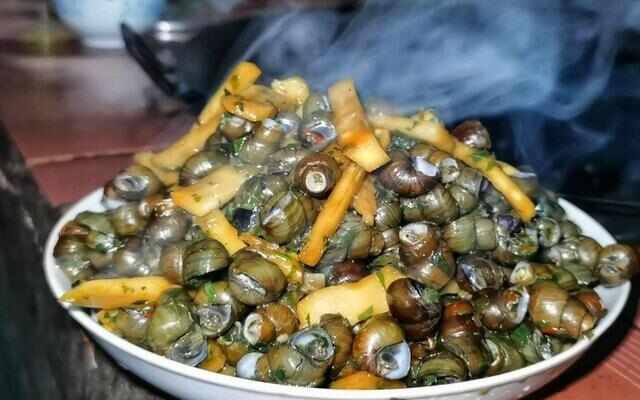 田东炒田螺是一道色香味俱全的美食美味,是当地人吃烧烤必点的食物。在晚上的夜市,炒田螺就是一道热门菜,刚炒出来的田螺到处都飘着令人垂涎的紫苏炒田螺香,肉肥嫩、吃起来味道鲜美爽口。一边吃田螺,一边喝啤酒,是当地人生活惬意的表现之一。