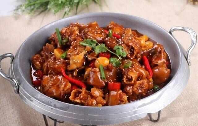 右江栗香猪手的主要用料就是猪脚跟板栗,是一道十分美味的广西百色美食。其制作方式就是先将猪手斩件,先用开水煮十分钟,然后把板栗放入蒸锅中蒸十五分钟,猪蹄炒出糖色之后加水煮开后用小火炖煮,这期间加入调味料,然后在收汁的时候放进板栗。