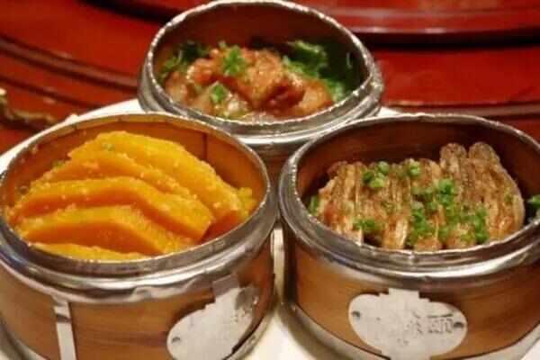 岳阳三蒸是湖南岳阳所特有的一道特色传统名菜,属于湘菜蒸菜。三蒸搭配合理,三种口味,牛肉是家常味,丸子是咸鲜味,南瓜是本味。做法很简单。但创意非常的新颖。把单一的蒸菜组合起来。就成了一道宴会上的大菜。真的非常的有创意。