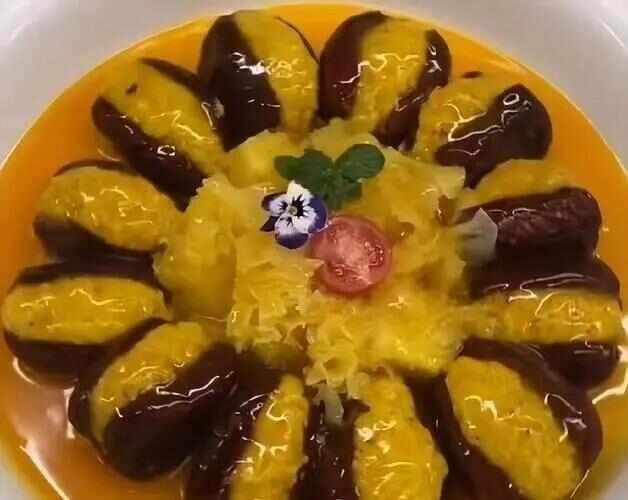 沙棘开口笑也是山西十大名优菜品之一。它属于一道甜品菜,是以大枣,南瓜,黄米和沙棘汁为主要食材,经过蒸熟后,淋上沙棘汁,具有浓浓的地方特色。在山西吕梁地区,拥有大片的沙棘林区。沙棘属于一种浆果,具有很高的营养价值,尤其富含维生素c,素有维C之王。在当地,有一种特色饮品,就是沙棘汁,酸酸甜甜的,非常可口。除了榨汁以外,沙棘还可以变身成为更多的美食。