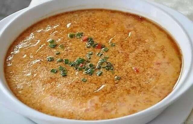 腌菜浆蒸蛋又名六月热冻。江西鹰潭的传统名菜。相传乾隆皇帝到天师家做客,天师报出菜名“六月热冻”后,皇帝不得其解,又不便多问。回京后,乾隆点名要吃“六月热冻”,当时可难为了宫中御厨。