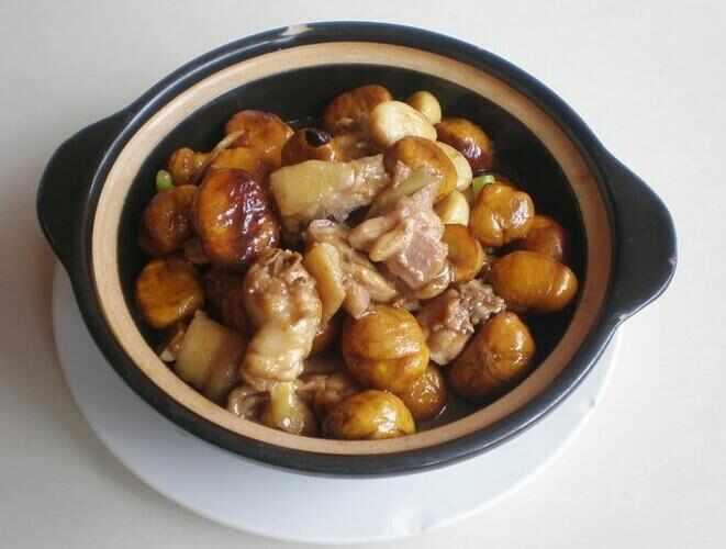 天师板栗烧土鸡是江西省传统的地方名菜。江西鹰潭龙虎山出产的天师板栗,个大香甜,淀粉丰富,是历代天师特别喜爱的果品和滋补品,素有“人间仙果”之称。