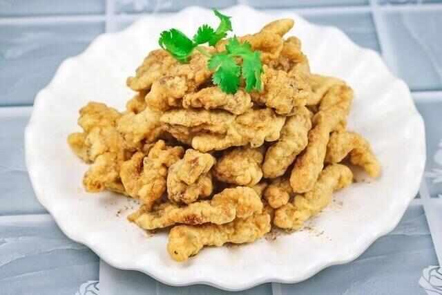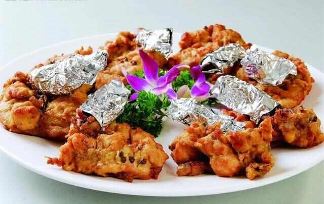 炸八块又名八块鸡,是河南省开封市的一道传统名菜,属豫菜系。该菜品由童子鸡、鸡肫、鸡肝、淀粉(蚕豆)等食材烹制而成。本地菜馆颇有韵味的“干搂炸酱不要芡,一只鸡子剁八瓣”的响堂报菜语,后半句就是指此菜而言。