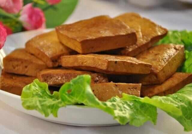 柯桥豆腐干是浙江绍兴传统的地方名吃之一,以其历史悠久、制作精细、风味独特而驰名省内外。柯桥豆腐干原名“五香茶干”。外观呈沉赭色,内质玉白细嫩,韧而不硬,既香又鲜,经口细嚼,回味悠长,久吃不厌;若与盐炒花生米同吃,被誉为“素火腿”,其味更佳。而且营养丰富。