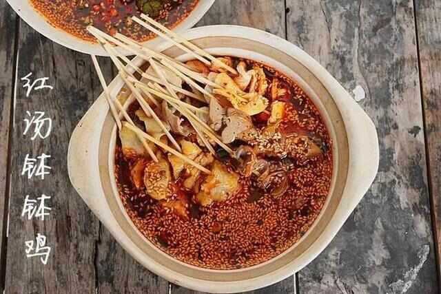 钵钵鸡是一道以鸡肉为主料,花生酱、芝麻酱、香油等为辅料制成的川菜。它的特点是色泽红亮,肉质鲜嫩,口味麻辣香醇。钵钵鸡的鸡肉煮得恰到好处,口感鲜嫩,再配上自制的麻辣酱料,让人吃起来十分过瘾。