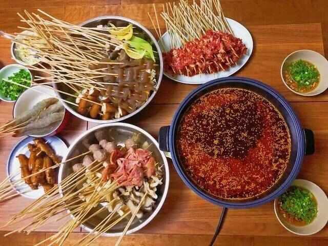 串串香是一道以各种蔬菜、肉类为主料,辣椒、花椒等为辅料制成的川菜。它的特点是口味麻辣浓烈,菜品新鲜多样。串串香的独特之处在于将各种食材串在竹签上烹饪,使得食材更加入味,口感更加鲜嫩。