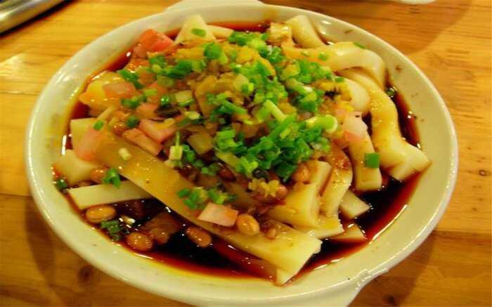 传统的贵州砂锅凉粉是夏日里的一道清凉小吃。绿豆粉制成的凉粉经过特殊工艺处理,放入砂锅中蒸煮,再搭配上贵州特有的辣椒油、蒜苗和香葱,一口下去,清凉爽口,让人欲罢不能。