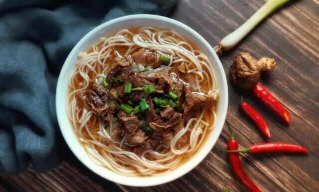 玉林牛腩米粉是广西壮族自治区玉林市的一道风味小吃,属于桂菜系;其煮法与一般煮法不同,需煮到粉条轻拉即断时。选用上好白粘米制作的细米粉,花生油适量,腐乳(红)少许。亦可添配玉林风味食品牛巴、肉丸。