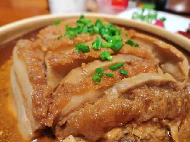 荔浦芋扣肉是广西桂林市的传统名菜,以其色泽红亮、口感糯滑而著名。这道菜选用荔浦特产的芋头与五花肉为主料,将芋头与五花肉切片后相互叠加,再放入蒸锅中蒸熟。荔浦芋扣肉的烹饪工艺讲究,既要保证芋头和五花肉的口感糯滑,又要让调料的味道充分渗透,让人一尝难忘。