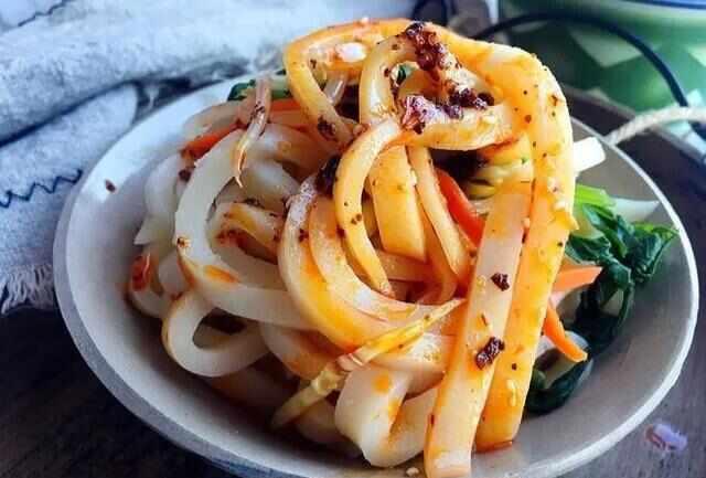 凉皮是西安的又一特色美食,以面粉为主料制成,口感爽滑,清爽可口。加上辣椒油、醋、蒜泥等调料,味道更加美味,让人欲罢不能。