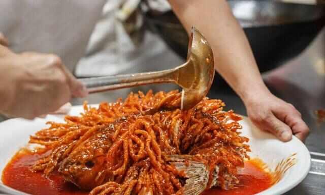金毛狮子鱼是河北的特色美食之一,一道承载着河北独特风味的佳肴,以金色的狮子形象为特征。它是由精心挑选的鲤鱼经过一系列特殊的加工和修饰后,再进行油炸而成。狮子,象征着力量与威严,而这道金毛狮子鱼则通过金黄诱人的外皮和丰富多彩的配料,展示了它迷人的外观和美味的口感。这道菜肴,不仅口感鲜美,令人回味无穷,更蕴含着浓厚的河北地方特色。它深受石家庄人民的喜爱,是他们心中的传统菜肴之一。