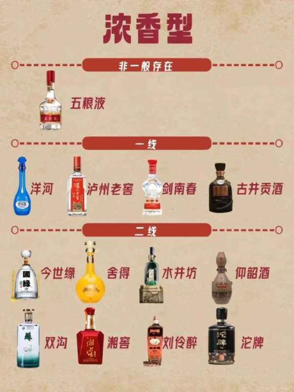 浓香型白酒以其醇厚的口感和丰富的香气赢得了消费者的青睐。五粮液作为浓香型白酒的领军品牌,其优质的酒质和丰富的文化内涵使得它成为了中国白酒的代表。此外,洋河、泸州老窖、剑南春、古井贡酒等也是浓香型白酒中的重要品牌。