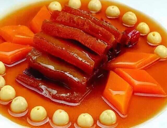 说到苏州的传统名菜,怎能不提蜜汁火方?这道菜以火腿为主料,经过长时间的炖煮,火腿的咸香味和蜜糖的甜味完美融合,形成了一种独特的口感。吃起来既有火腿的咸香,又有蜜糖的甜美,让人欲罢不能。这道菜将苏州菜的烹饪技艺和口味特点展现得恰到好处。