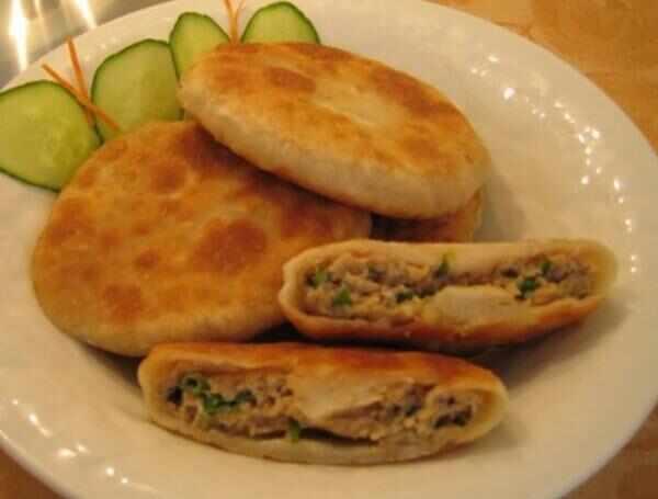 沈阳回头是一种清真食品,用面粉揉好面团后擀平、抽薄、上馅、折叠成长方形再把两头包紧制成。色泽金黄、皮焦馅嫩、口味鲜香。它是沈阳独特的清真美食之一,让人欲罢不能。