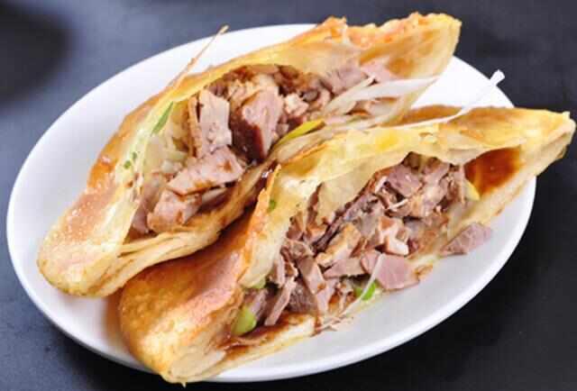 沈阳的李连贵熏肉大饼以其皮面金黄、外酥里嫩、滋味浓香而著称。每一口都能品尝到独特的熏肉香味和饼皮的酥脆口感,是沈阳非常有名的小吃之一。