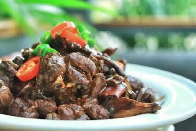 全州醋血鸭是广西桂林市全州县的一道地方特色菜,虽然看起来黑乎乎的但散发着独特的香气。它的配料搭配极佳,苦瓜、荷兰豆和子姜共同为这道菜增添了别样的风味。吃一口醋血鸭就能感受到浓郁的香气和独特的口感让人难以忘怀。