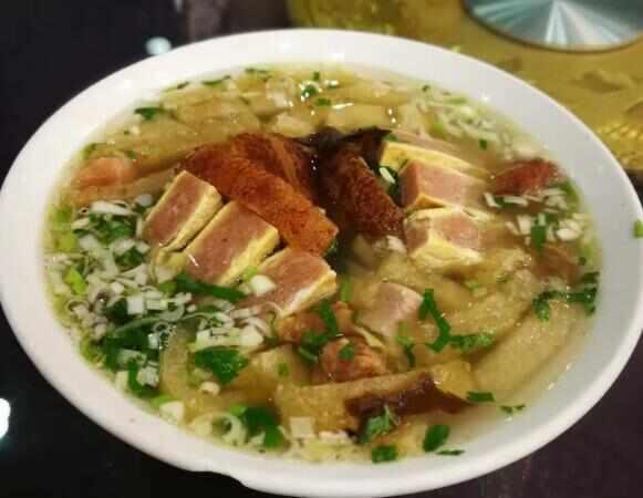 天水杂烩是一道色香味俱佳的特色小吃。将鸡蛋饼和肉糜层层叠加压实后切条兑入高汤撒上调料葱花香菜而成。荤素混合,鲜美细滑,营养丰富,老少皆宜。无论是当早餐还是下午茶点心都是不错的选择哦!